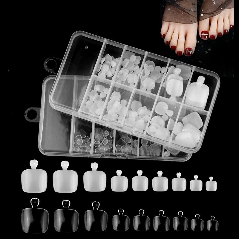 100 pcs False Toe Nails Nail Art Full Coverage Tips Clear Natural Extension - Natural