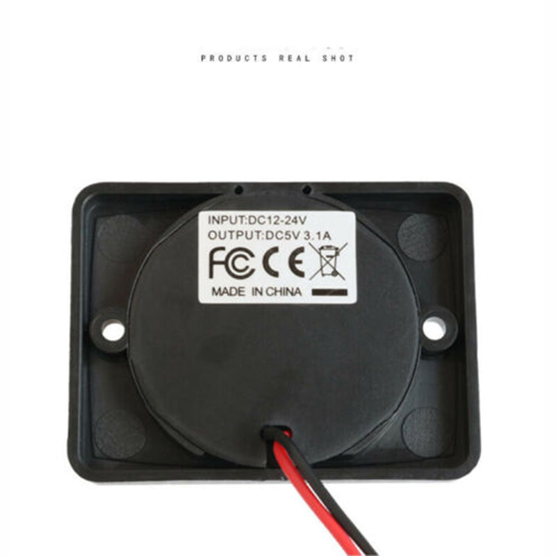 12V 3.1A Dual USB Car Charger 2 Port Adapter Power Socket Charging Panel Mount- Blue