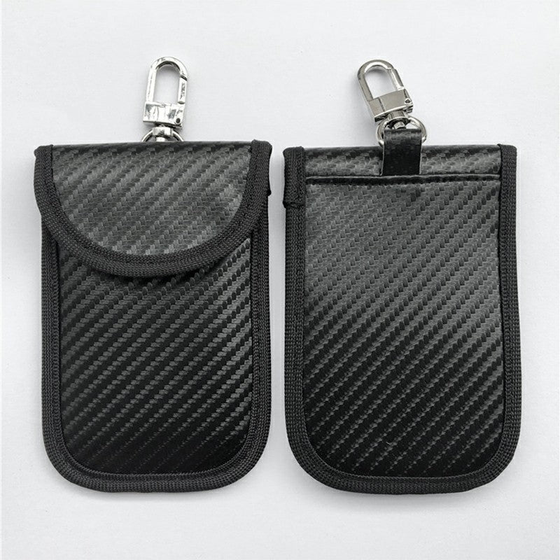 Carbon Fiber Car Remote Key Signal Blocker Case Fob Pouch eyless RFID Shielding Pouch with Key Ring