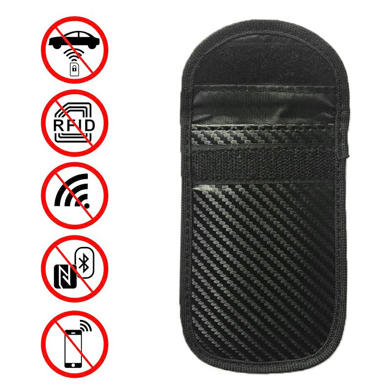 - Protect your vehicle with our key fob pouch which features an inbuilt signal blocking faraday cage lining which prevents RFID information scanning.