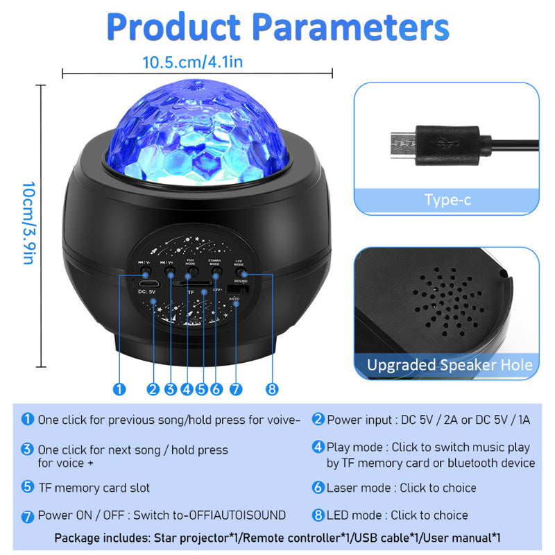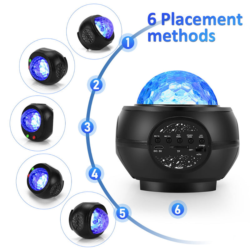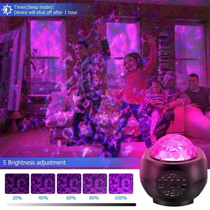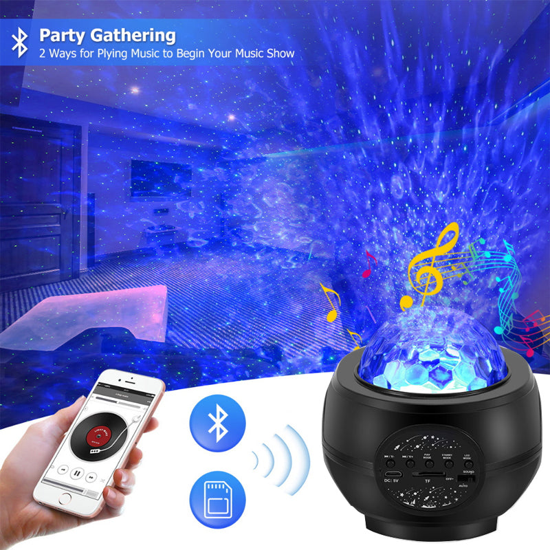 LED Galaxy Projector Starry Music Night Light Star Sky Projection Lamp for Party - Black.
