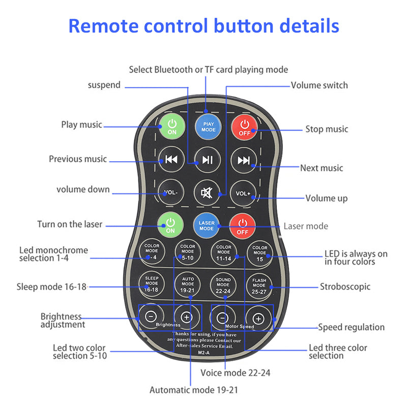 3. Multi-lighting color. The lighting has 15 options of LED color mode that can be match with 3 laser moses. It can project beautiful light on wall or ceiling, It is a nice atmosphere light to decorate room.