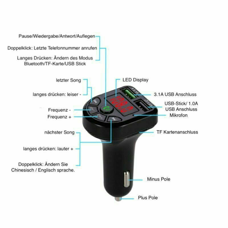 - Bluetooth version 5.0 FM transmitting frequency: 87.5-108Mhz